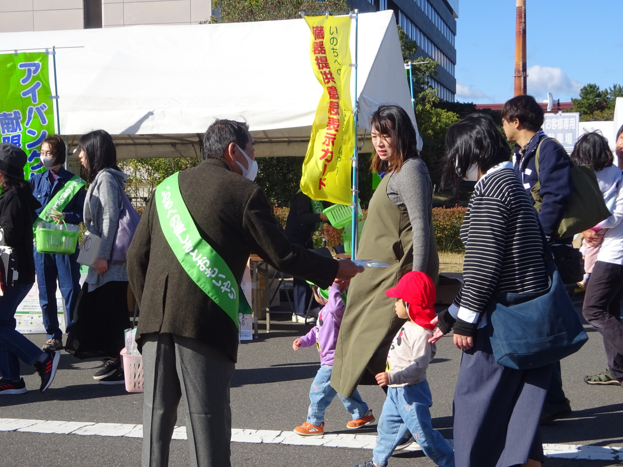 音楽ステージや工場見学など賑やかに催されるフェスタにて、臓器移植やアイバンク活動の普及啓発を行いました。岡山県腎臓病協議会の皆様にもご協力いただきありがとうございました。
